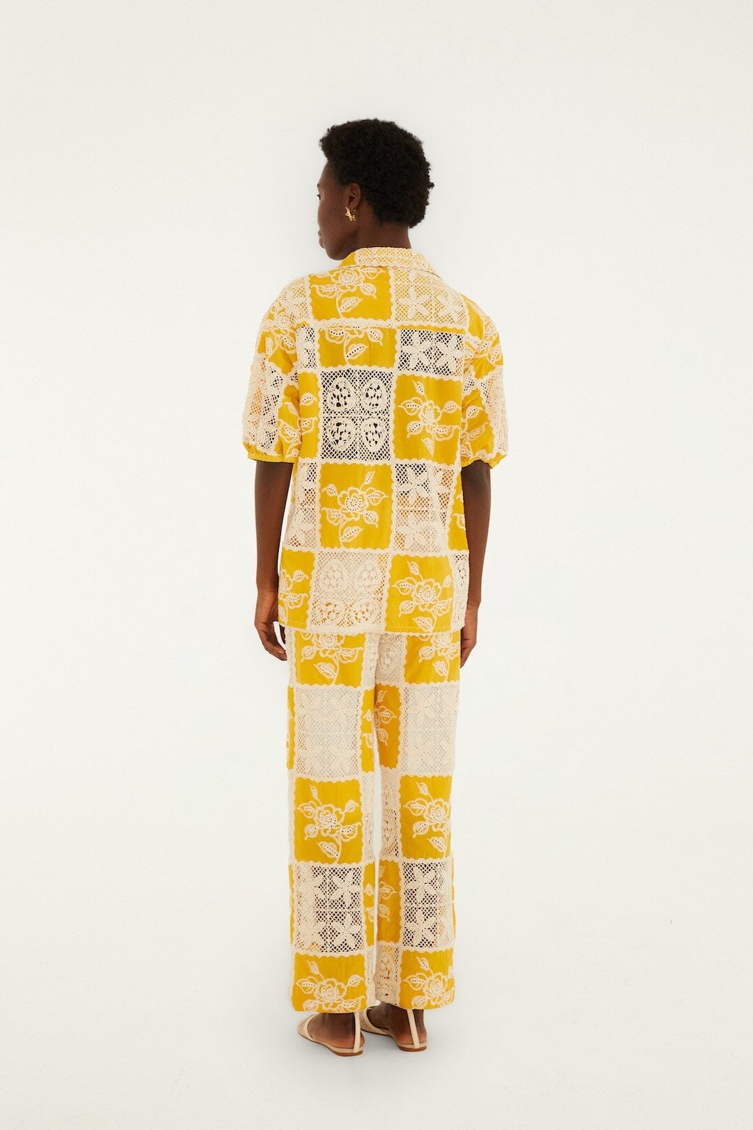 Mit der Lace Pants von FARM Rio erleben Sie mühelosen Charme. Zartes Lochmuster trifft auf eine lässige, weite Silhouette. Die weiche, elfenbeinfarbene Spitze harmoniert perfekt mit den filigranen Blumenmustern und verleiht Ihrem Tag einen Hauch brasilianischer Verspieltheit. Die leichte und atmungsaktive Hose fällt elegant und schenkt Ihnen bei jeder Bewegung Wärme und Wohlbefinden. Ob sonniger Nachmittag oder romantischer Spaziergang im Mondschein – diese Hose verkörpert spielerische Eleganz ganz ohne Worte.