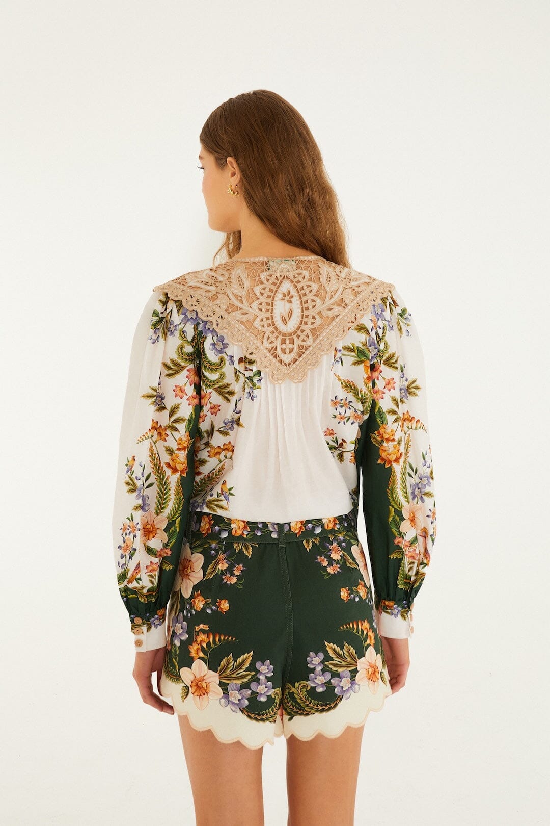green berry garden beaded buckle twill shorts