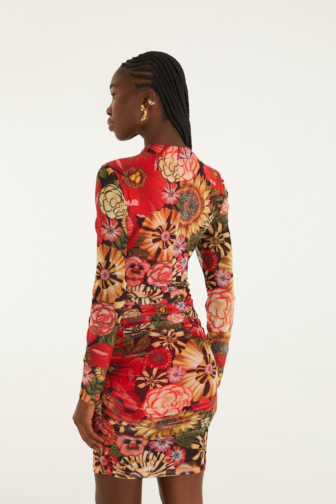 Embrace effortless charm with the Black Flowershop Tulle Mini Dress by FARM Rio. This playful silhouette features a high neckline and layers of delicate black tulle adorned with vibrant floral embroidery, creating a dreamy garden of color and texture. The airy fabric gently dances with every step, while subtle ruching adds a soft, flattering shape. Perfectly blending whimsy and elegance, this dress invites you to celebrate life’s joyful moments with vibrant ease.