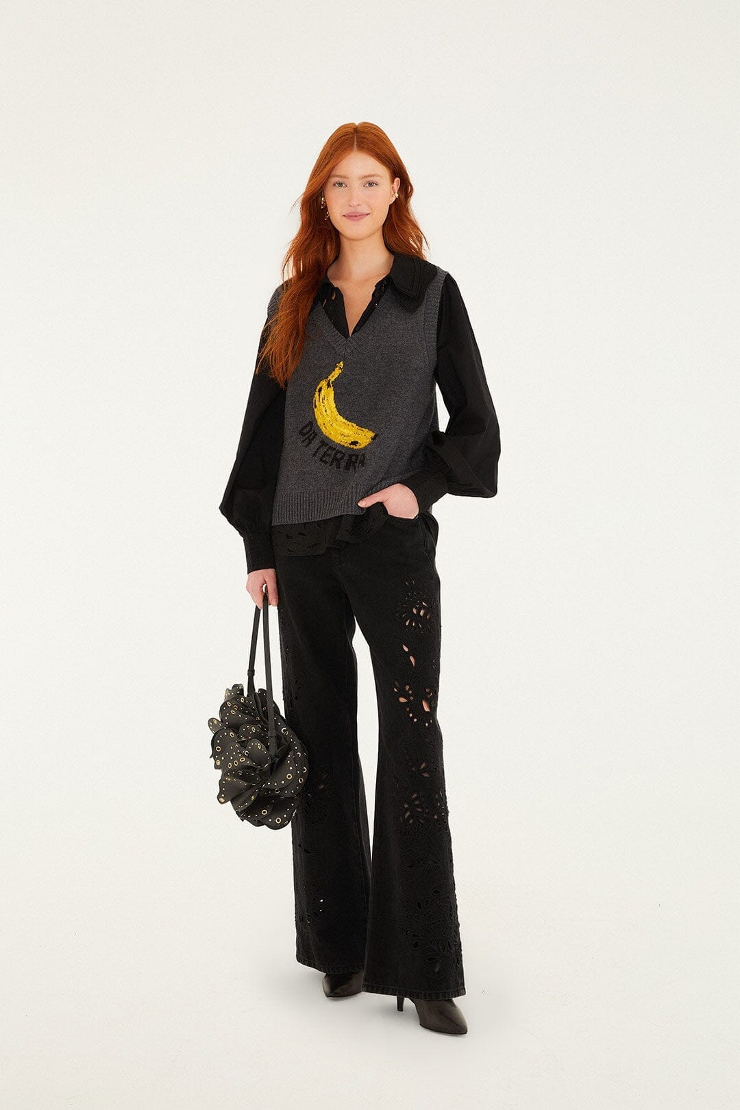 Embrace effortless charm with the Grey Banana Da Terra Knit Vest from FARM Rio. Crafted in a soft, breathable knit, this vest features a flattering V neckline that gently frames the collarbone. Its muted grey tone offers a versatile backdrop for playful layering, while subtle textural details evoke the brand’s signature warmth. Perfect for a cozy, sun-dappled afternoon, this piece brings a relaxed yet refined spirit to your knitwear collection.