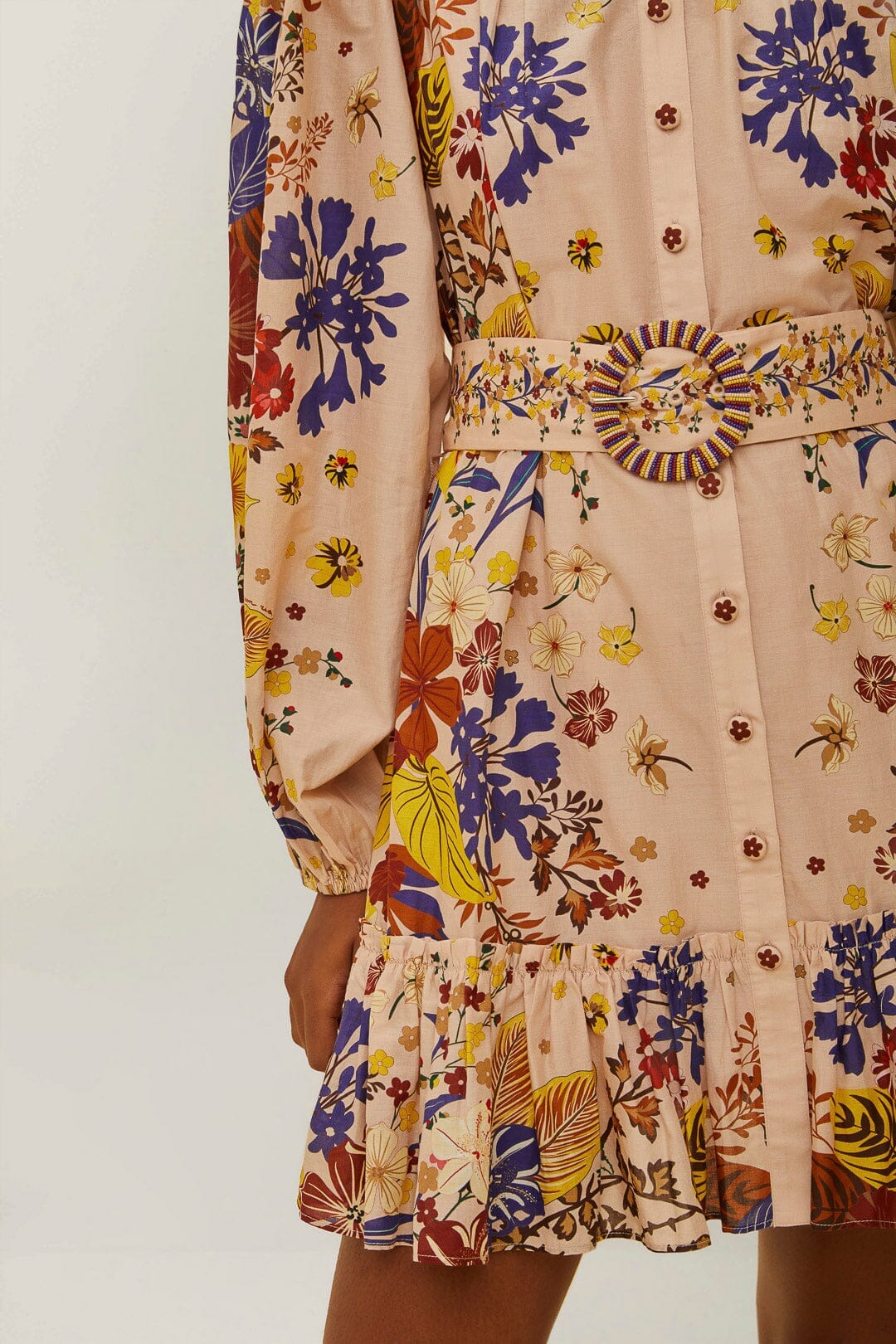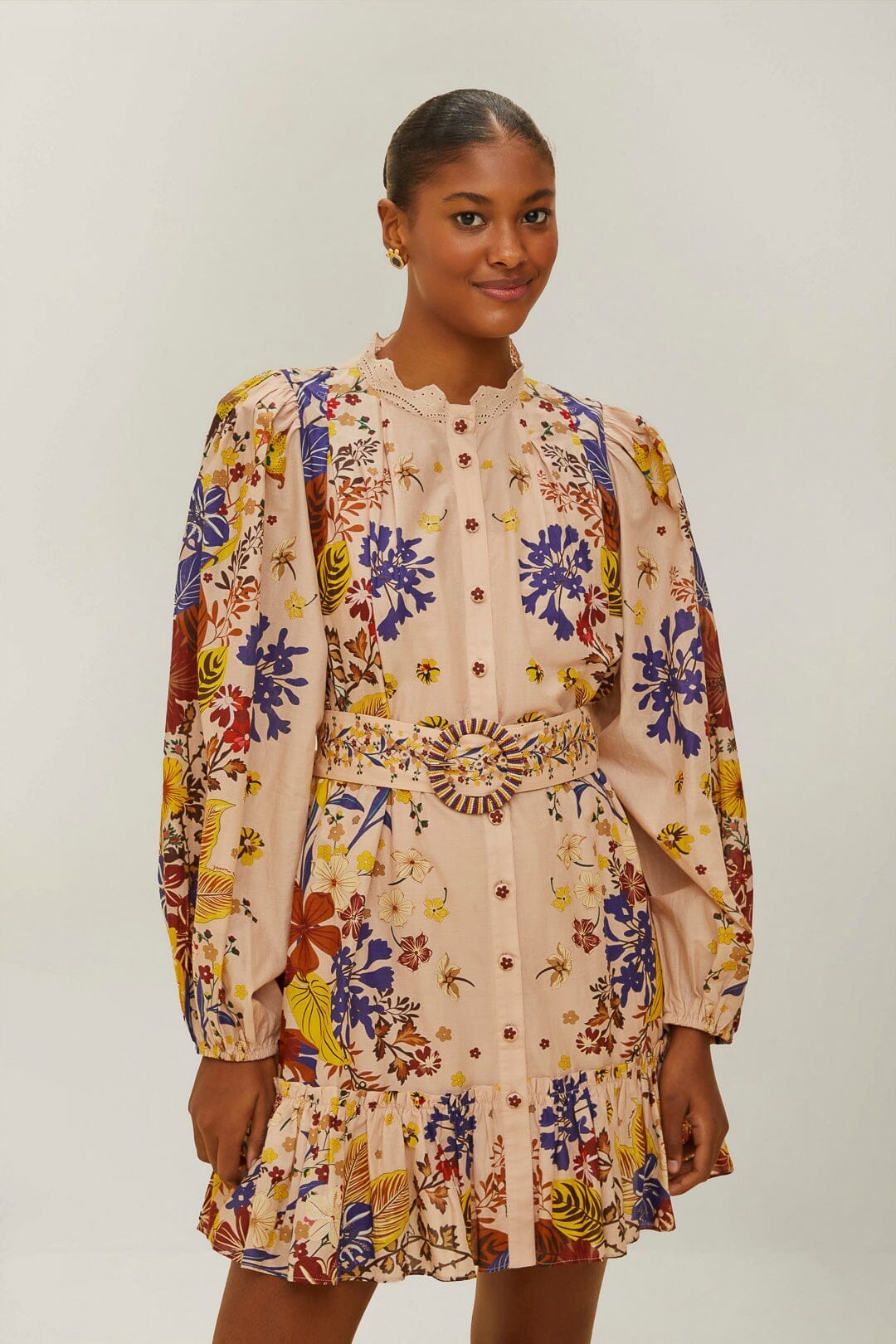 Adoptez une touche de fantaisie avec la mini-robe à manches bouffantes Pink Beauty Bouquet. Les motifs floraux complexes, débordant de teintes bleues vibrantes et de nuances automnales chaudes, évoquent une atmosphère à la fois ludique et élégante. Dotée d'un décolleté haut et de manches bouffantes flatteuses qui complètent la taille cintrée, cette robe assure une silhouette gracieusement définie. Un ourlet à volants ajoute une touche séduisante à chacun de vos pas, faisant de cette pièce un ajout charmant à votre garde-robe.
