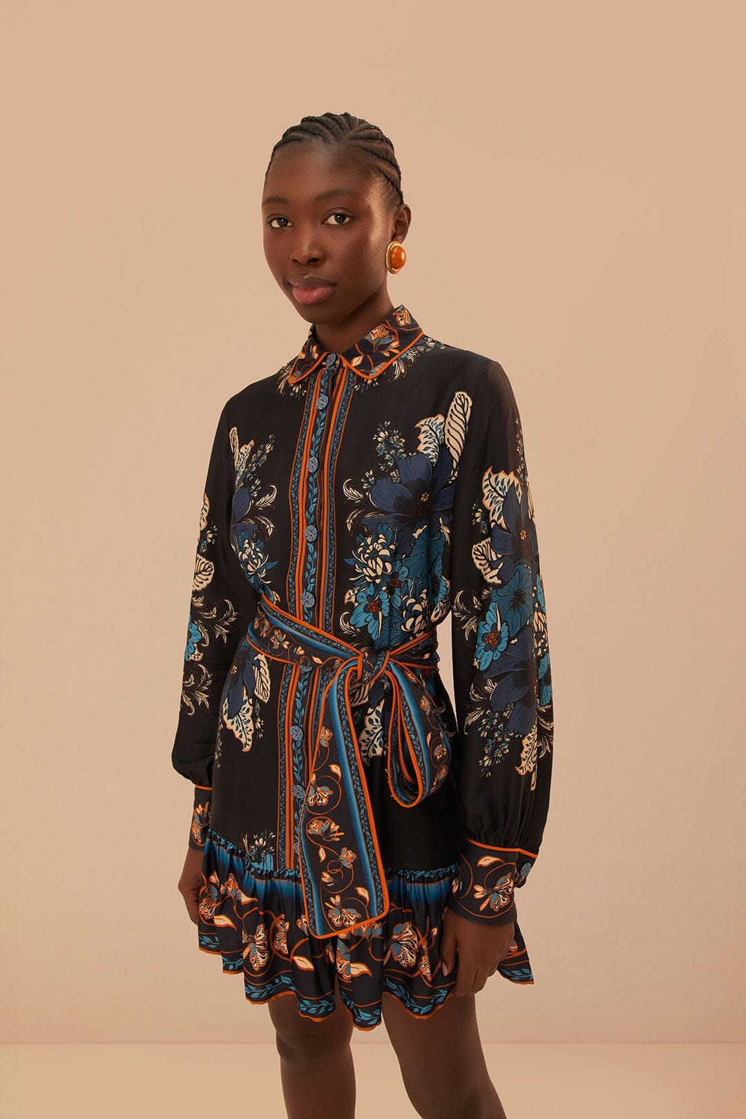 Enveloppez-vous dans l'enchantement de la mini-robe en viscose LENZING™ ECOVERO™ Black Blossom Tapestry, une fusion délicate de motifs floraux opulents et de riches motifs inspirés de la tapisserie. Ornée d'un élégant col et d'une taille cintrée, cette pièce se prolonge par un mini-ourlet ludique, créant une silhouette à la fois raffinée et pleine d'entrain. Son tissu, confectionné en viscose LENZING™ ECOVERO™, est non seulement luxueusement doux mais également confectionné avec soin. Adoptez le charme de ce vêtement unique, parfait pour créer des moments inoubliables.