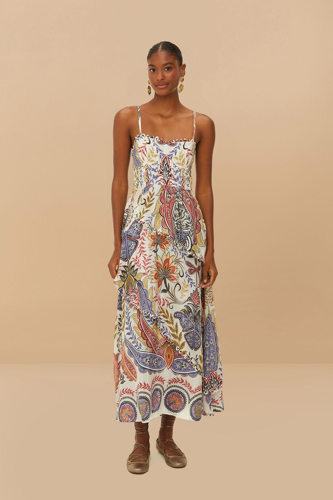 Adoptez l'élégance sans effort avec la robe longue bohème glamour blanc cassé à bordures bouclées de FARM Rio. Cette superbe pièce présente une silhouette fluide ornée de détails de bordure bouclés complexes qui ajoutent une touche de fantaisie. L'encolure carrée renforce son charme bohème, tandis que la douce teinte blanc cassé la rend polyvalente pour toutes les occasions. Confectionnée avec soin, cette robe allie sans effort chaleur et espièglerie, ce qui en fait un ajout indispensable à votre garde-robe.