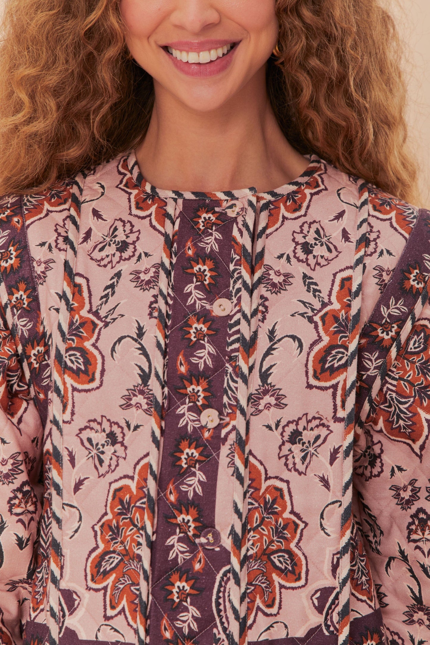 Découvrez le charme envoûtant de la veste à manches longues Glam Tapestry Burgundy, un vêtement qui résonne avec l'art émouvant de FARM Rio. Soigneusement confectionnée avec une encolure ronde, cette veste arbore une palette bordeaux opulente ornée d'un imprimé inspiré de la tapisserie. La silhouette décontractée et les manches longues créent un profil confortable mais élégant, parfait pour ajouter une touche d'extravagance quotidienne à votre garde-robe. Adoptez la texture riche et le design captivant en vous enveloppant dans ce chef-d'œuvre vestimentaire unique.