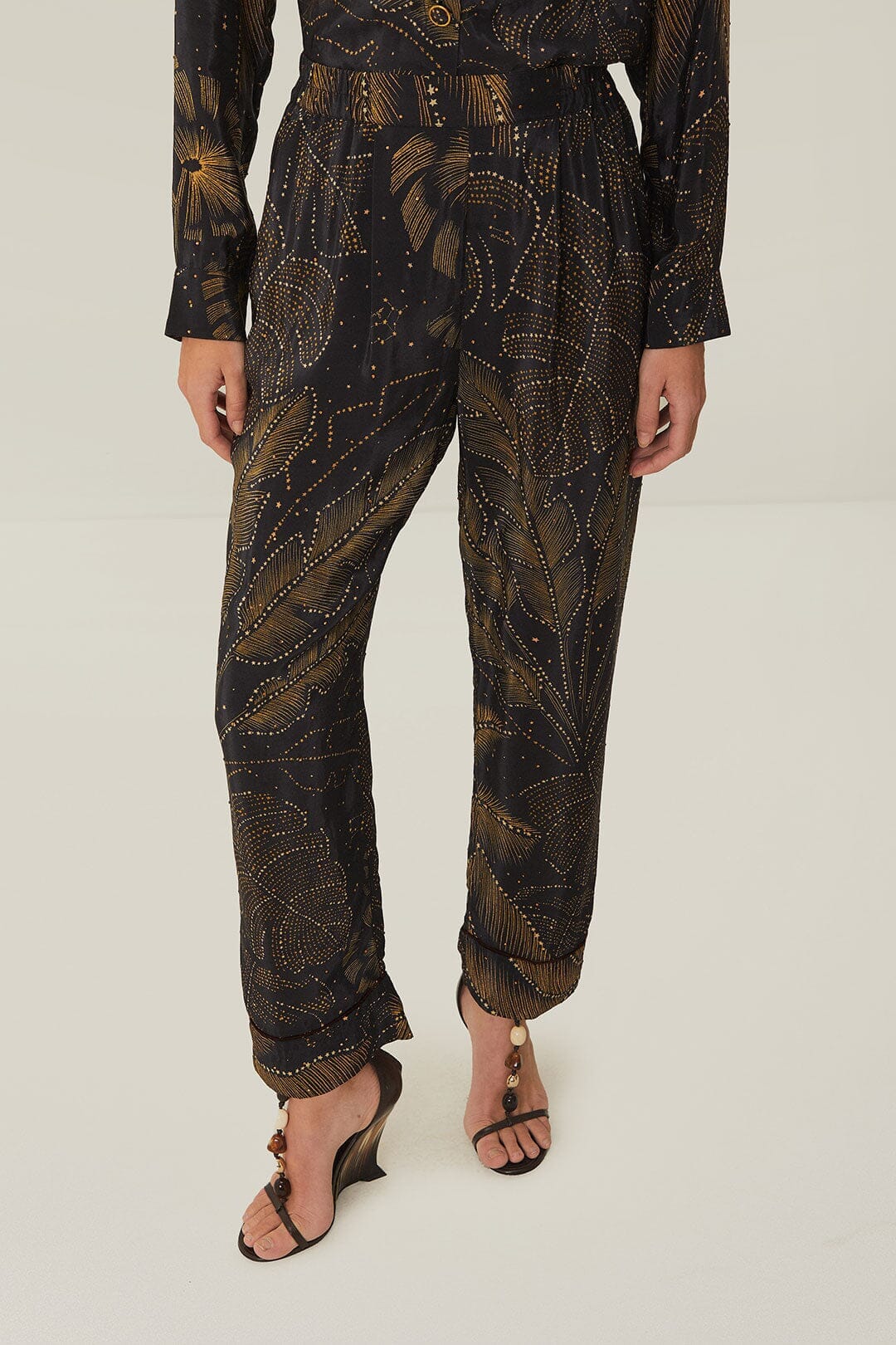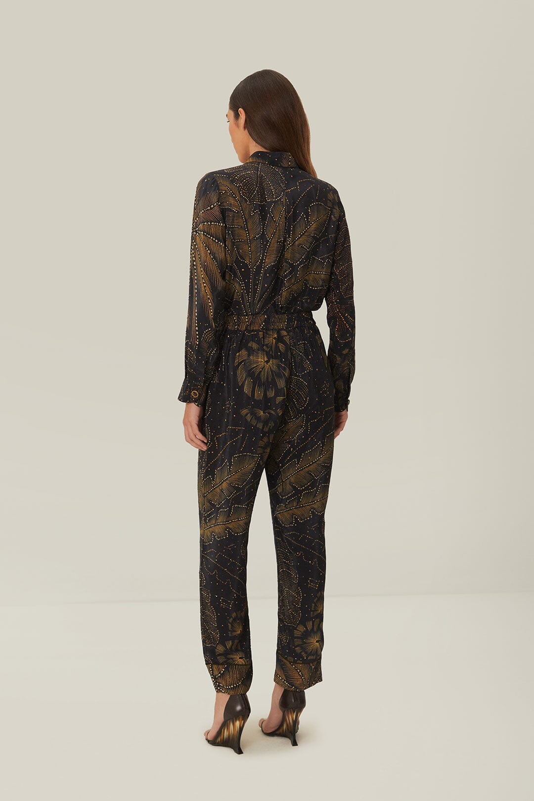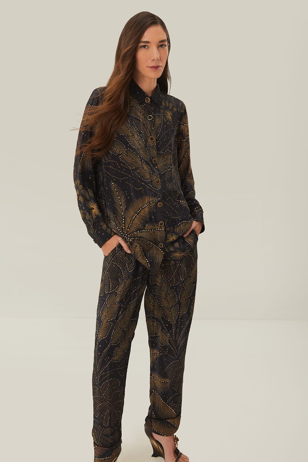 Adoptez la beauté enchanteresse du pantalon de pyjama noir Golden Foliage, un véritable emblème d'élégance confortable. Confectionné avec une broderie délicate, ce pantalon présente un motif de feuille dorée fantaisiste qui danse sur une toile noire profonde, offrant une touche de charme de la nature. Le tissu, Fabriqué à partir de matériaux responsables, il caresse la peau d'un doux murmure, parfait aussi bien pour les soirées intimes que pour les moments de détente élégants. Laissez-vous tenter par la silhouette décontractée qui apporte un air de fantaisie sophistiquée à votre garde-robe.