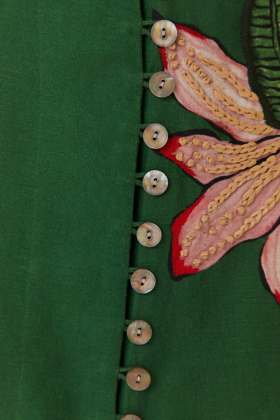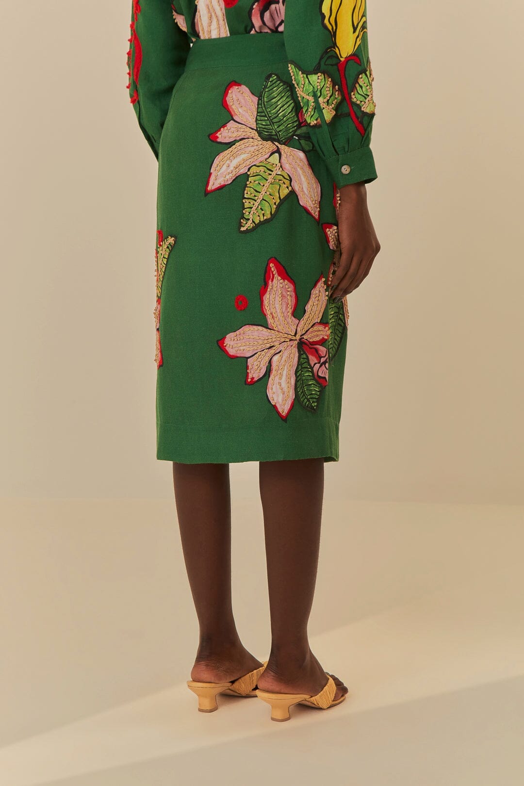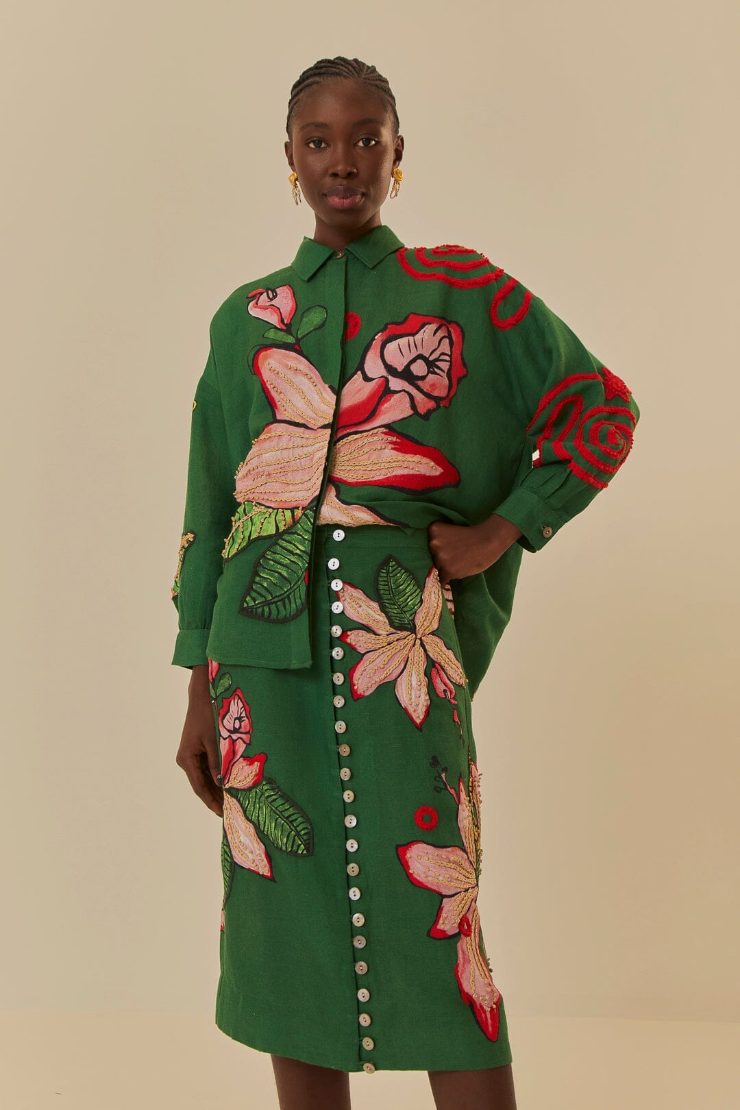 Embrassez l'esprit vibrant du Brésil avec la jupe midi Green Pollen de FARM Rio. Ornée d'un mélange ludique de teintes vertes vibrantes et de motifs d'inspiration tropicale, cette jupe est une célébration de la couleur et de la joie. La silhouette fluide, rehaussée par des volants délicats et une coupe taille haute flatteuse, capture l'essence de l'élégance sans effort. Fabriquée avec amour, cette pièce est parfaite pour les journées ensoleillées et les soirées douces. Ajoutez une touche du charme enchanteur de FARM Rio à votre garde-robe et laissez votre style s'épanouir.