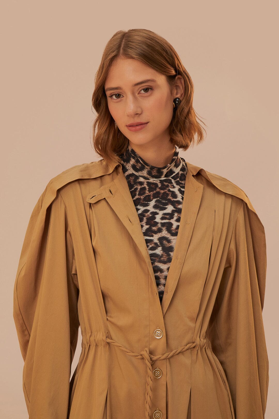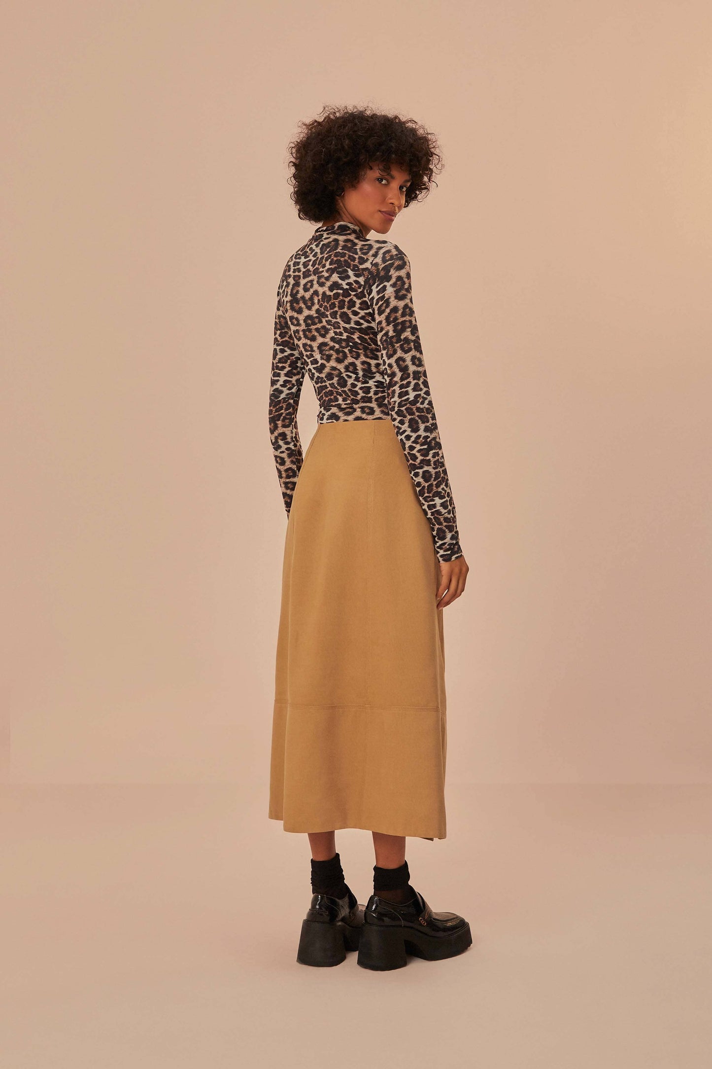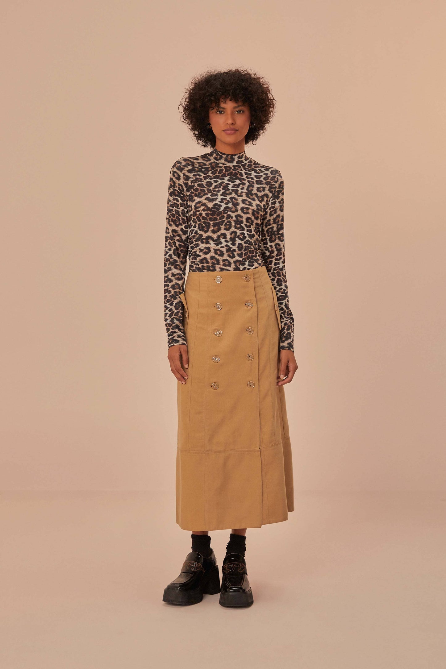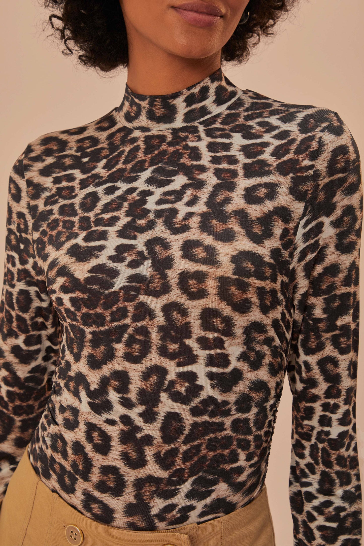 Adoptez votre côté sauvage avec le chemisier en jersey crème Natural Skin, doté d'un imprimé animal audacieux dans des teintes terreuses qui capturent un sentiment d'aventure. Ce haut à col montant épouse votre silhouette, créant une silhouette chic sans effort qui donne vie à n'importe quelle tenue. Son imprimé unique et sa coupe ajustée en font un compagnon idéal pour les looks superposés ou comme pièce remarquable à elle seule.