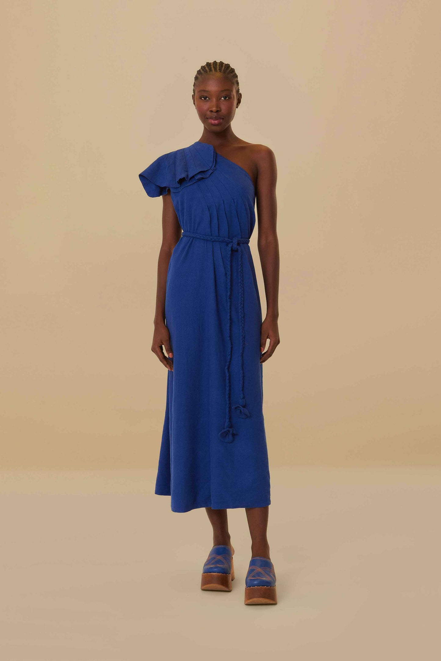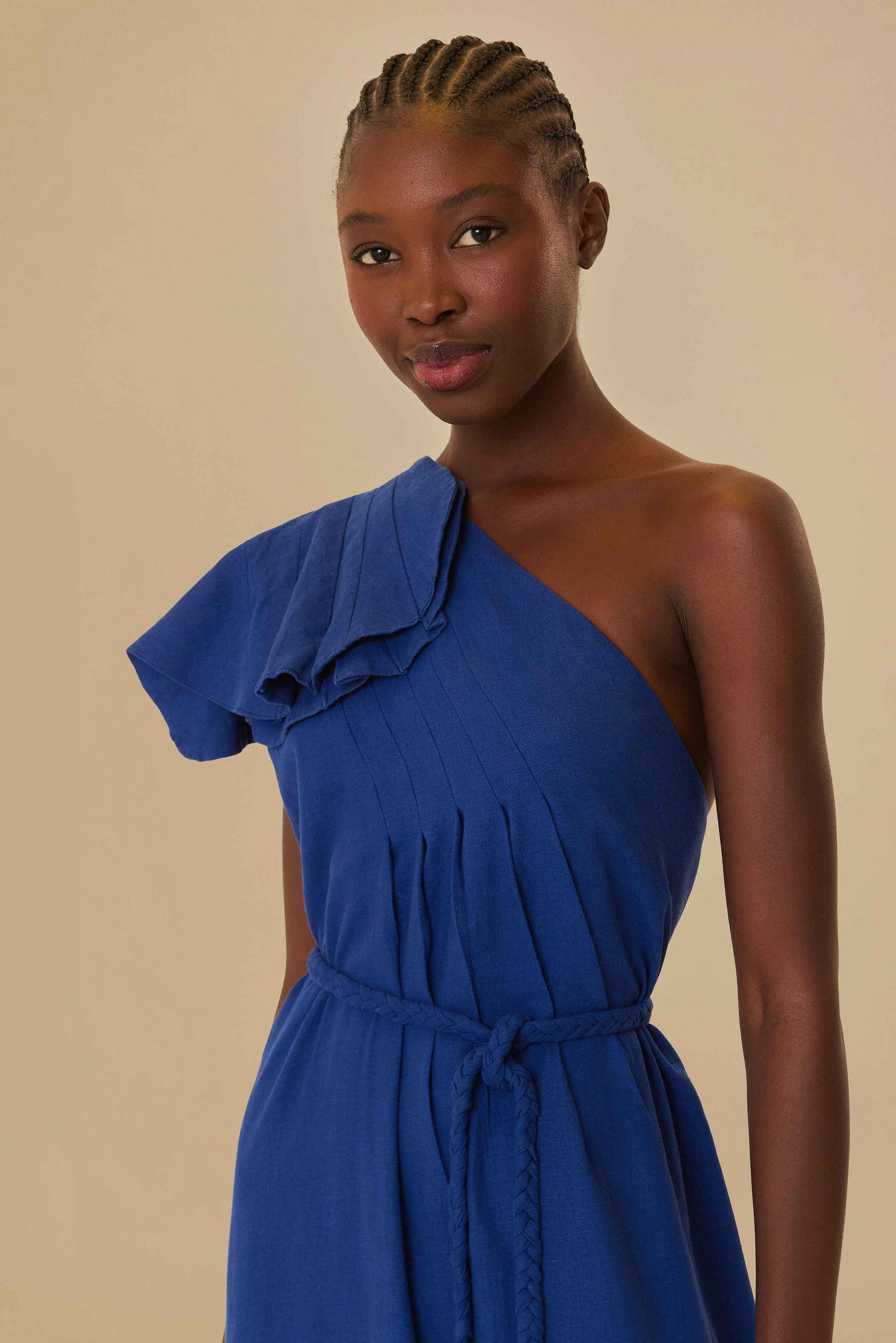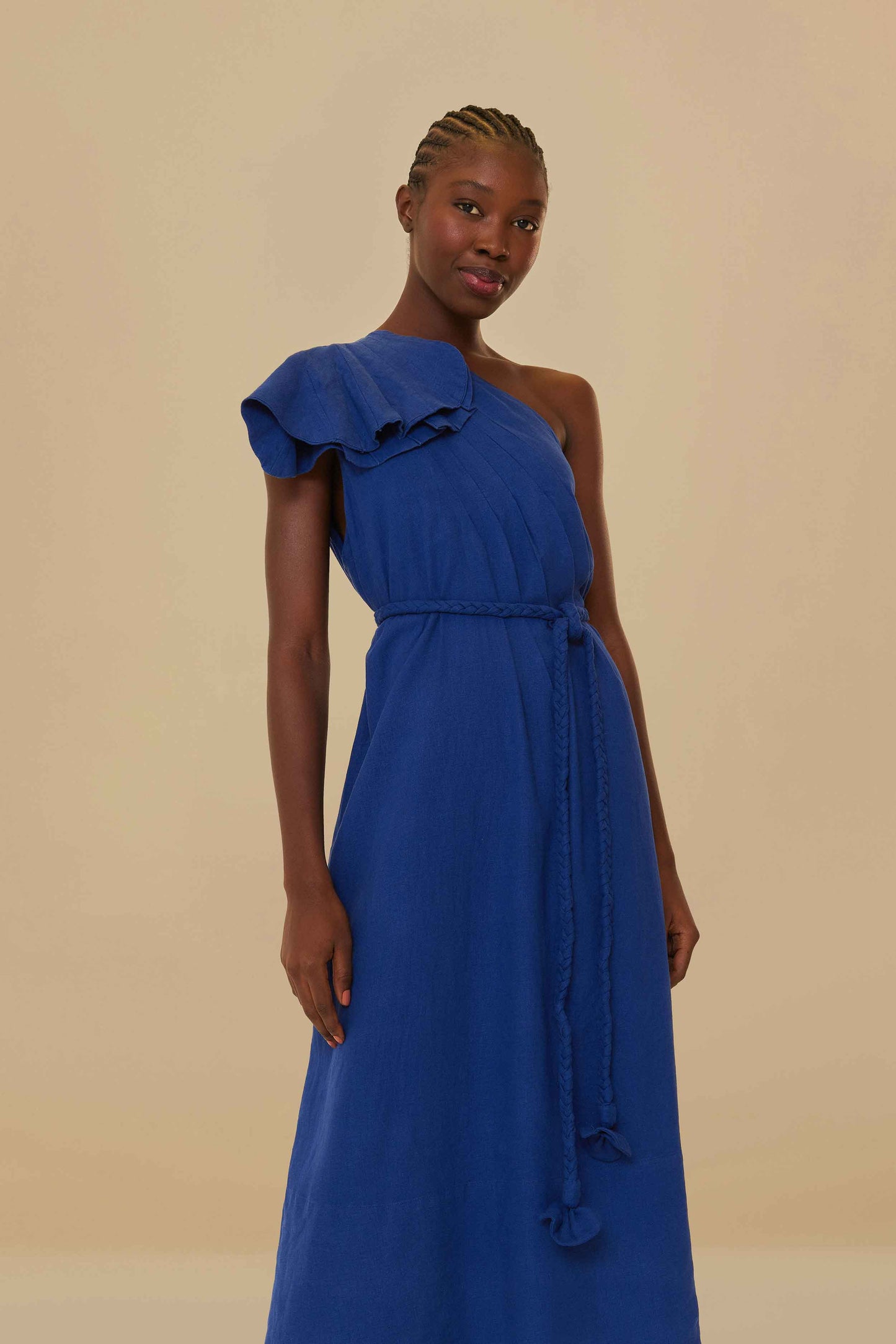 robe longue bleu marine à une épaule feuille lenzing™ ecovero™ euroflax™