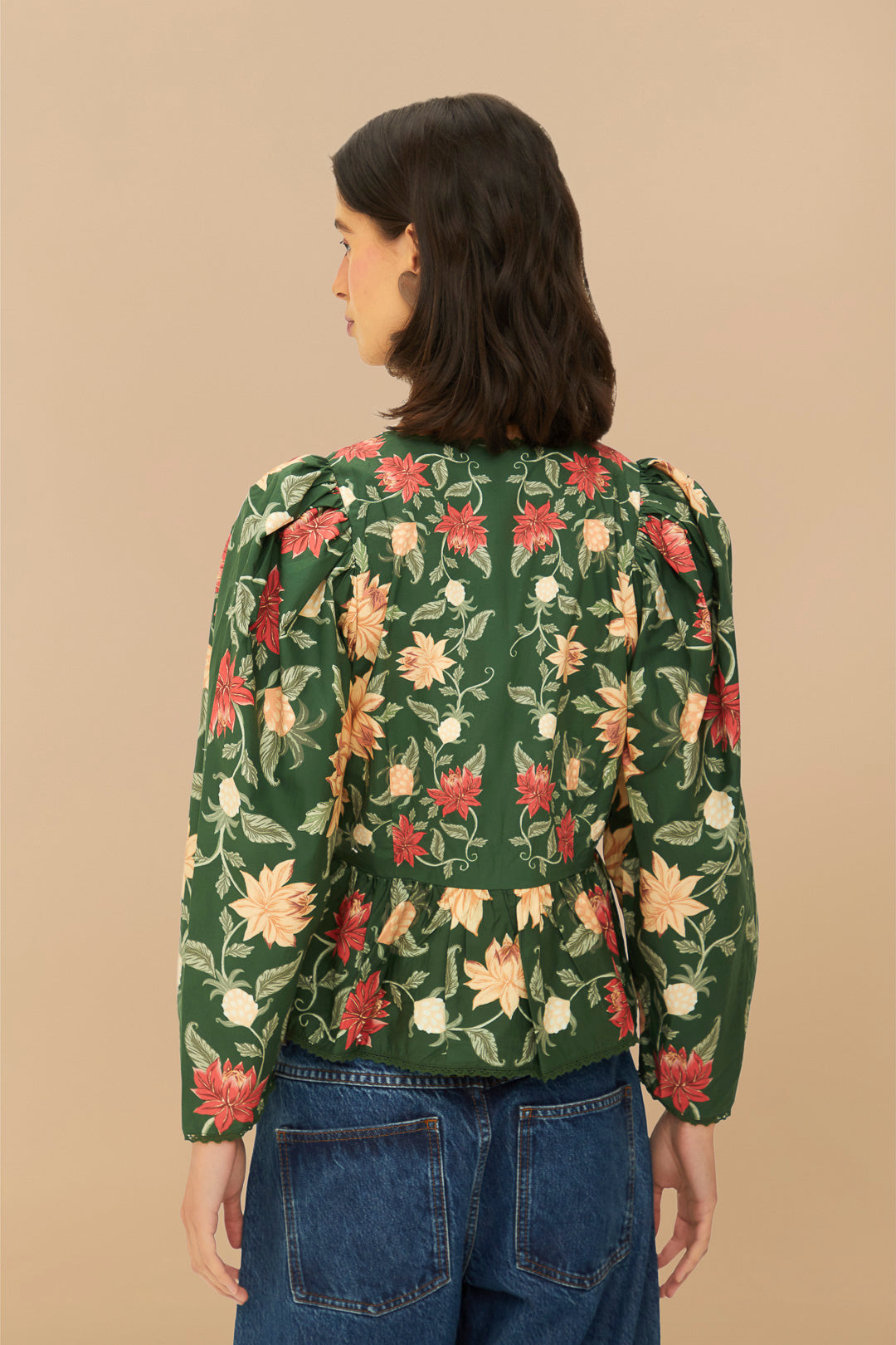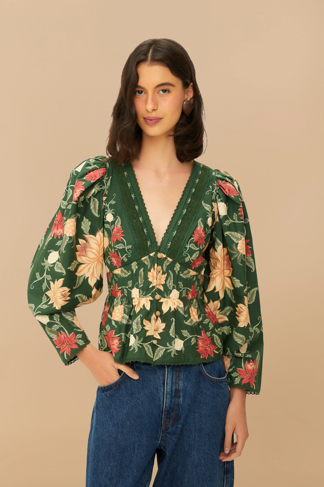 Plongez dans un rêve tropical avec la blouse de jardin verte à motifs d'ananas, où des motifs d'ananas luxuriants dansent sur une toile verte vibrante. Confectionnée à partir de matières responsables, cette blouse présente un élégant décolleté en V qui complète sa silhouette aérienne. De charmantes manches à volants ajoutent une touche ludique, ce qui en fait la pièce parfaite pour profiter des journées ensoleillées avec style. Laissez le charme exotique et les motifs vivants vous transporter dans un paradis de jardin.