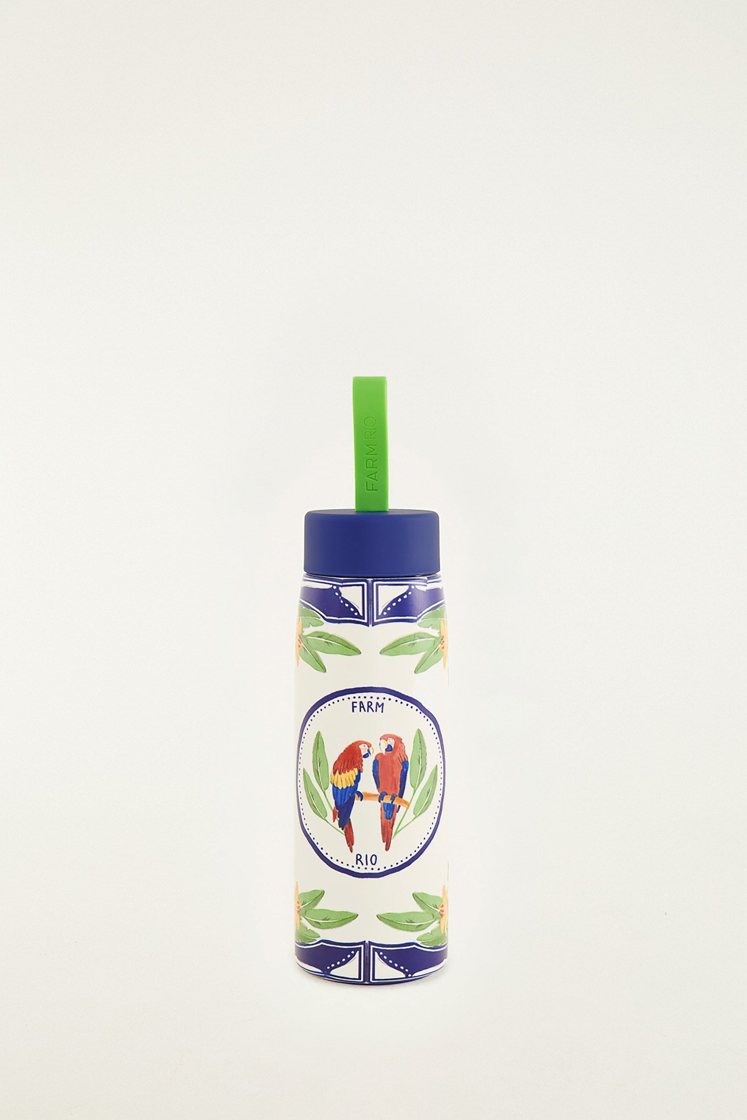 Embrace everyday freshness with the Tropical Destiny Handle Insulated Stay Fresh Bottle from FARM Rio. Featuring vibrant tropical prints that dance in lush greens and sunset oranges, its sleek silhouette fits effortlessly in hand. The playful handle adds ease and charm, while the insulated design keeps your favorite drinks perfectly chilled or warm. This bottle is a joyful companion, blending bold colors and thoughtful details that brighten every moment.