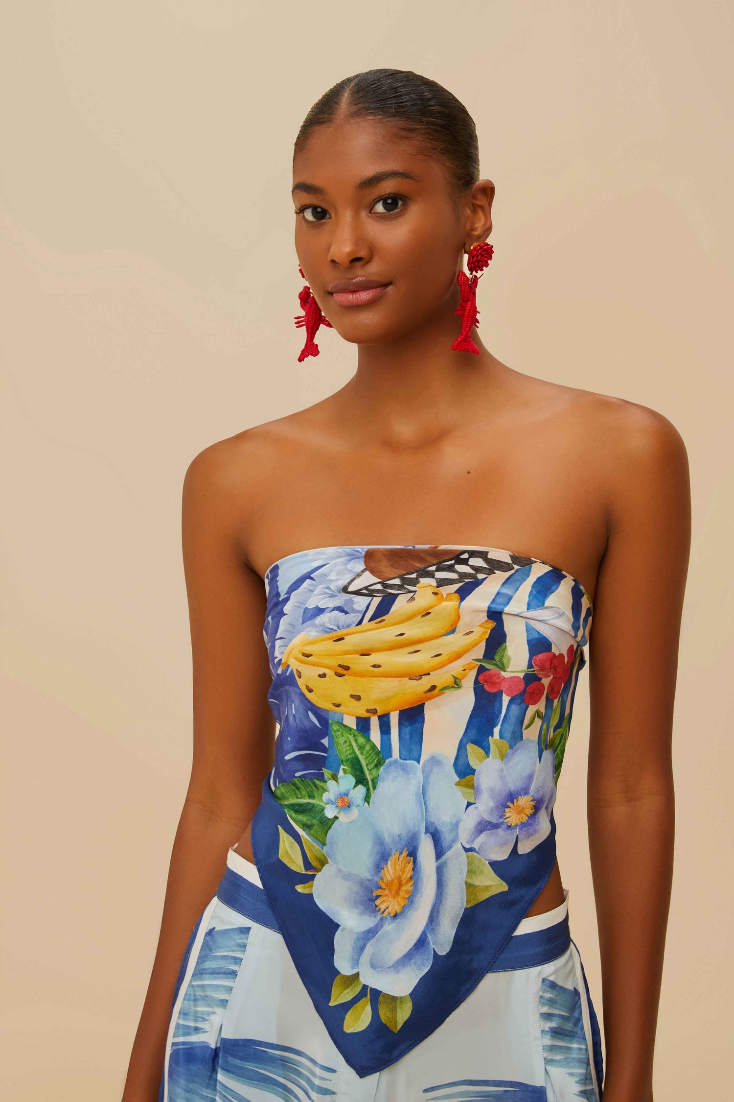 The Blue Fresh Table Scarf from FARM Rio is a vibrant celebration of nature's palette. Bursting with joyful blues and lively floral patterns, it features a playful mix of tropical fruits and blossoms that dance across the fabric. The unique triangular silhouette gracefully wraps around, exuding charm and elegance. Perfect for those who adore artistic prints, this scarf brings a refreshing touch of whimsy and warmth to any ensemble.