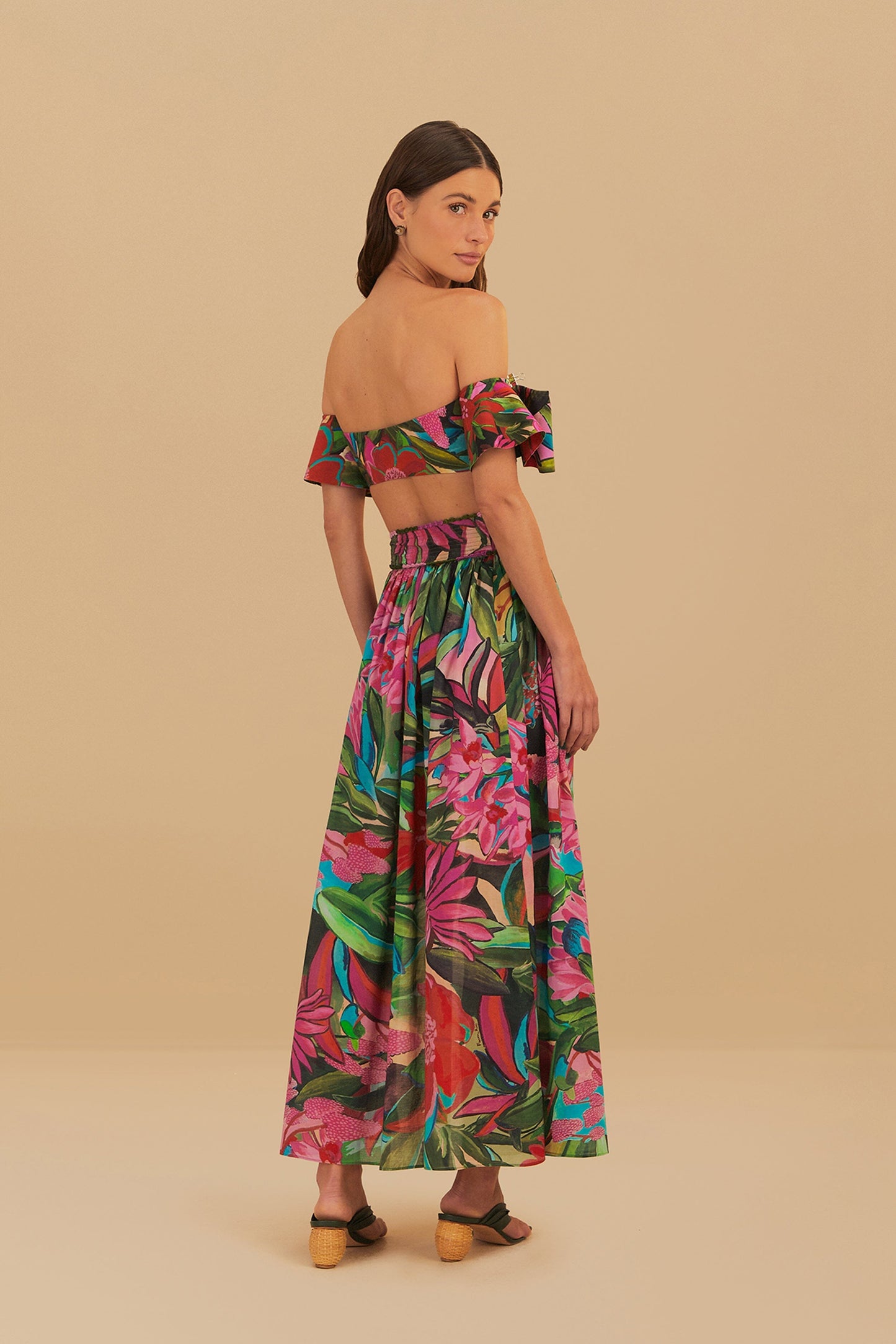 Embrace the essence of a tropical escape with the Jardin De Reve Midi Skirt. A canvas of lush botanicals dances across the fluid fabric, while the gracefully draped ruffle at the hem adds a touch of whimsy. The flattering wrap silhouette is secured by a charming side tie, creating an effortlessly chic look that captures the vibrant spirit of a sun-drenched garden. This skirt is the epitome of carefree elegance, perfect for creating memorable moments.