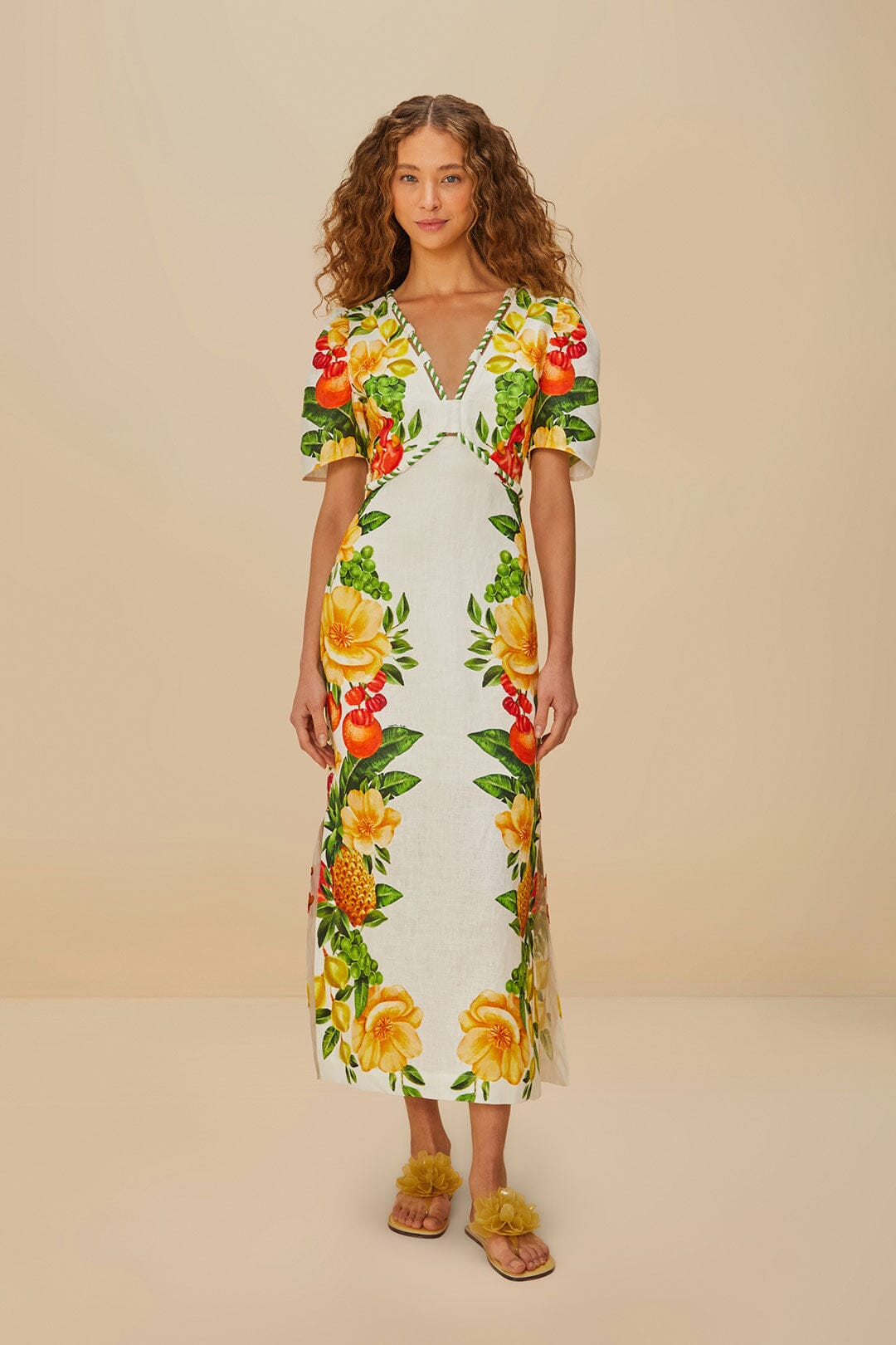 off-white picnic flowers euroflax™ premium linen maxi dress