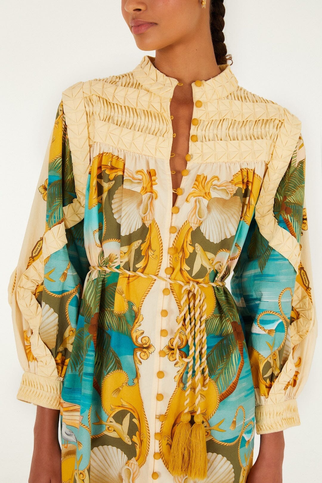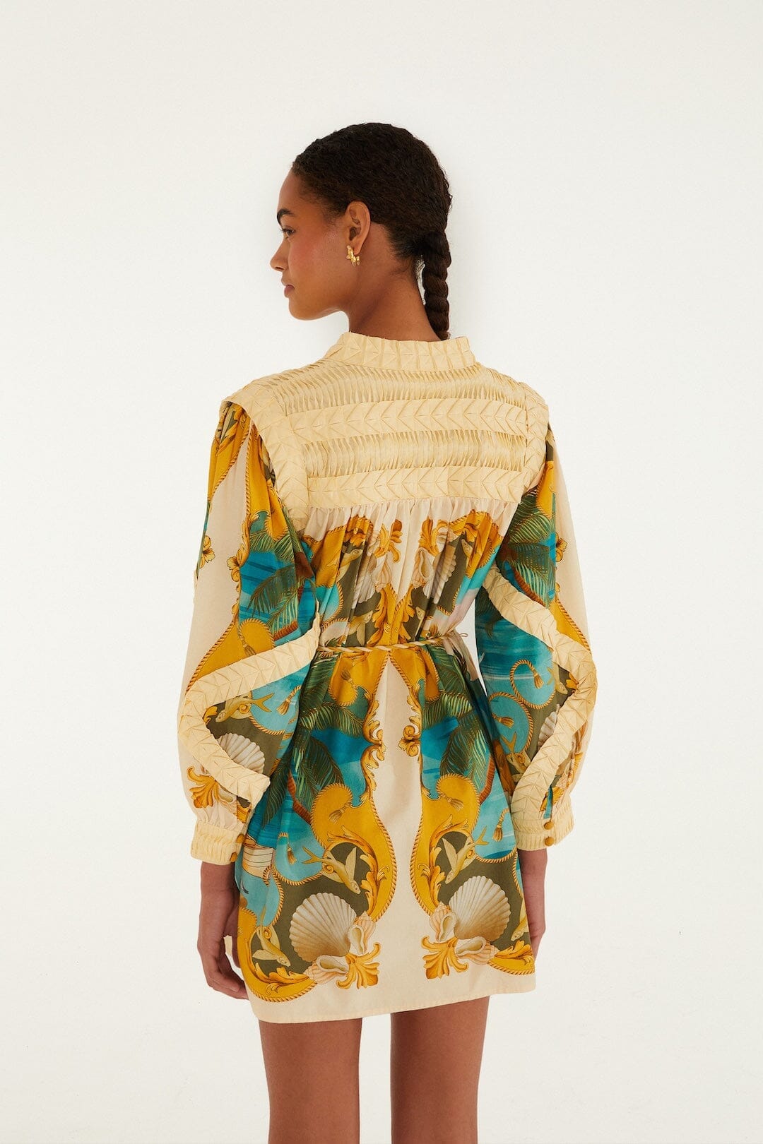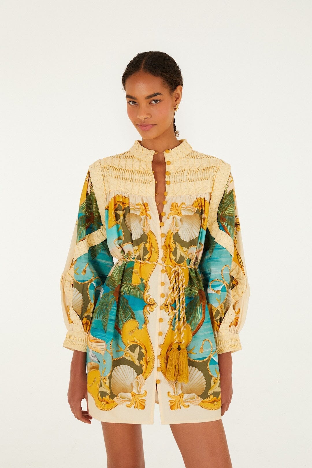 Embrace effortless charm with the Sand Royal Sea Smocked Organic Cotton Mini Dress by FARM Rio. This playful piece features a high neckline and delicate smocked bodice that gently shapes the silhouette. Crafted from soft organic cotton, its warm sandy tones are kissed with subtle sea-inspired patterns, evoking sunlit beach days. The flowy skirt dances with gentle movement, creating a lighthearted and breezy feel—perfect for those who love vibrant ease with a touch of nature’s warmth.
