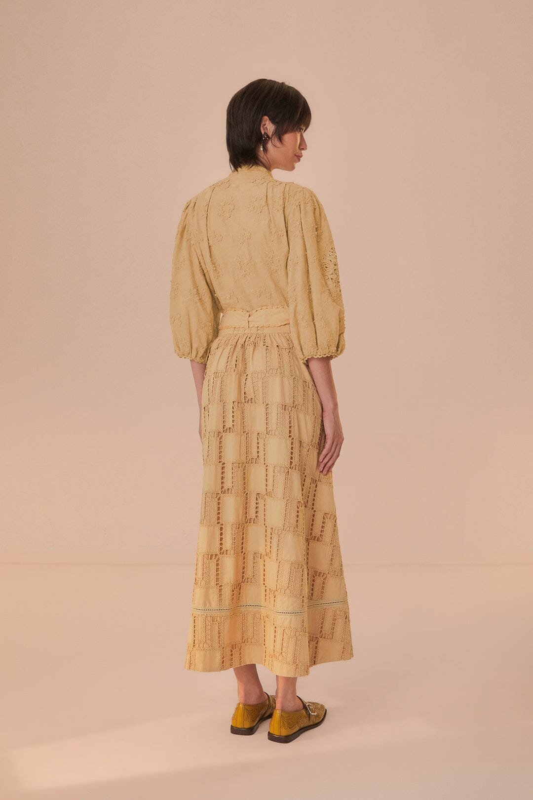 sand crochet midi skirt