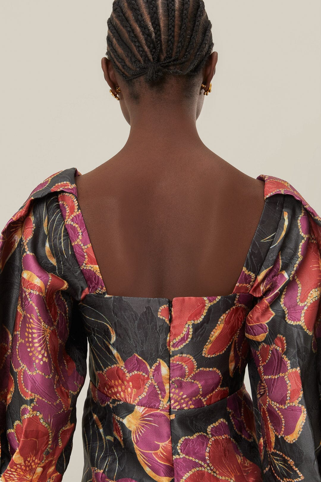 Embrace the allure of the Shiny Chita Black Short Sleeve Midi Dress, a captivating ensemble that marries traditional patterns with a modern silhouette. This stunning piece features a flattering V neckline and gently puffed short sleeves that add a touch of romance. Adorned with a radiant floral print that blooms against a dark backdrop, this dress exudes elegance with a playful twist, perfect for enchanting evenings or chic daytime affairs. Each movement reveals the subtle shimmer integrated into the fabric, ensuring you'll sparkle wherever you go.