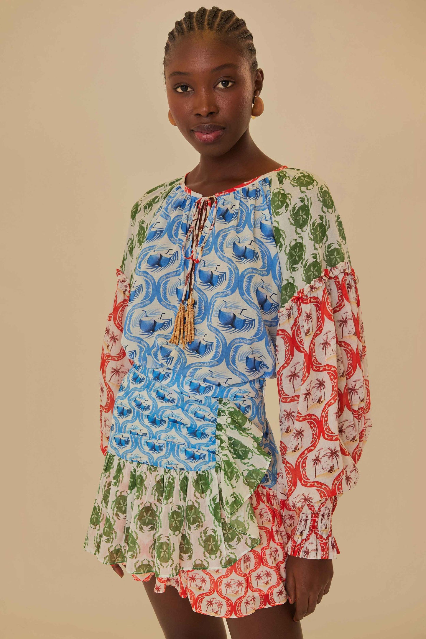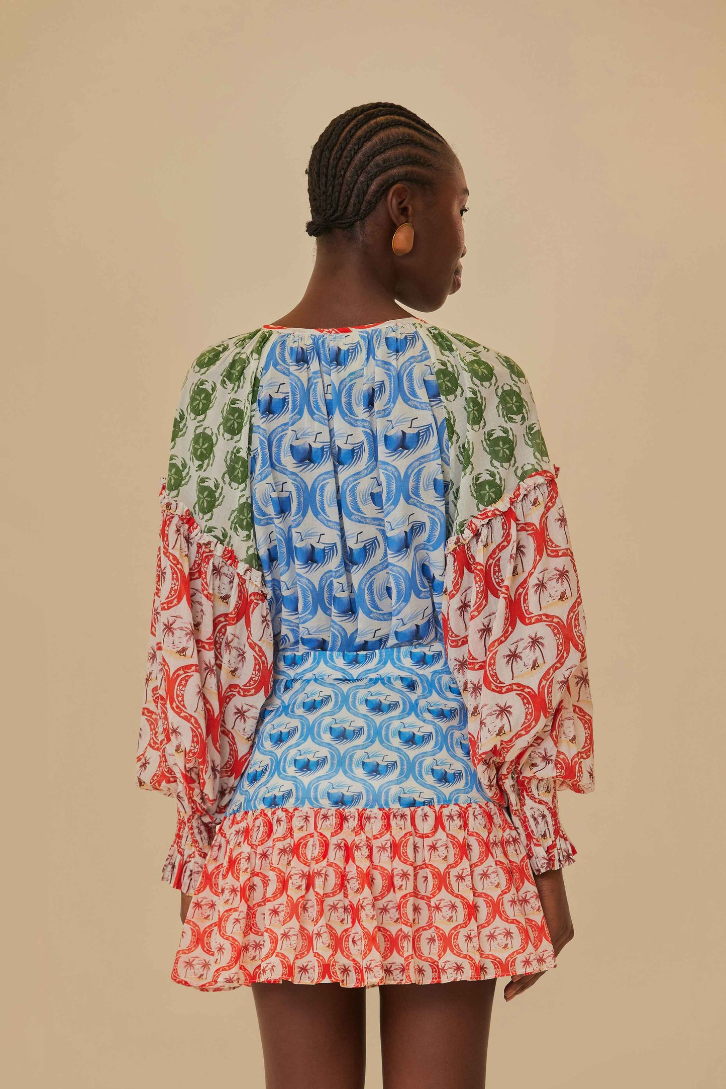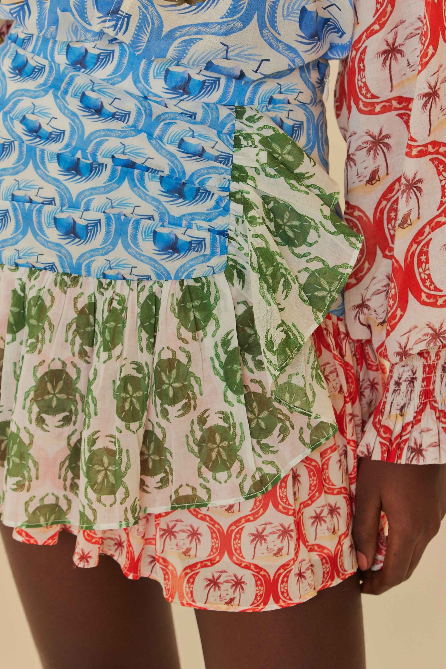 Embrace the vibrant energy of Brazil with the Stamp Mix Mini Skirt by FARM Rio. This playful piece features a harmonious blend of bold prints and intricate patterns, creating a standout look. The flirty silhouette is accentuated by a ruffled hem, adding a touch of whimsy to your wardrobe. Made from lightweight fabric, it's perfect for any sunny day adventure. Step into the world of FARM Rio and let your style bloom.