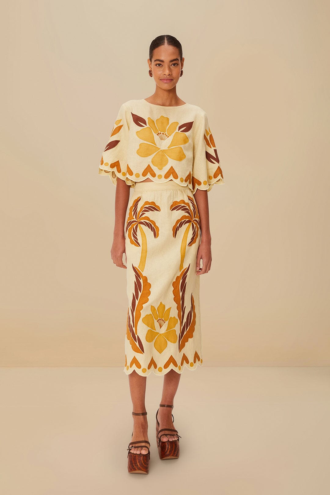 Meet the sand summer cutwork Euroflax™ premium linen blouse, where tropical elegance meets effortless charm. This blouse features a round neckline and delicate cutwork patterns that dance across its lightweight fabric. The warm, sand-hued linen, crafted from responsible materials, beautifully embraces the spirit of summer. Flowing gracefully with a relaxed fit, it’s perfect for sunlit adventures, offering a timeless silhouette that celebrates both comfort and style.