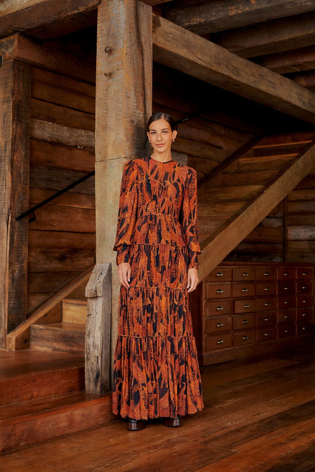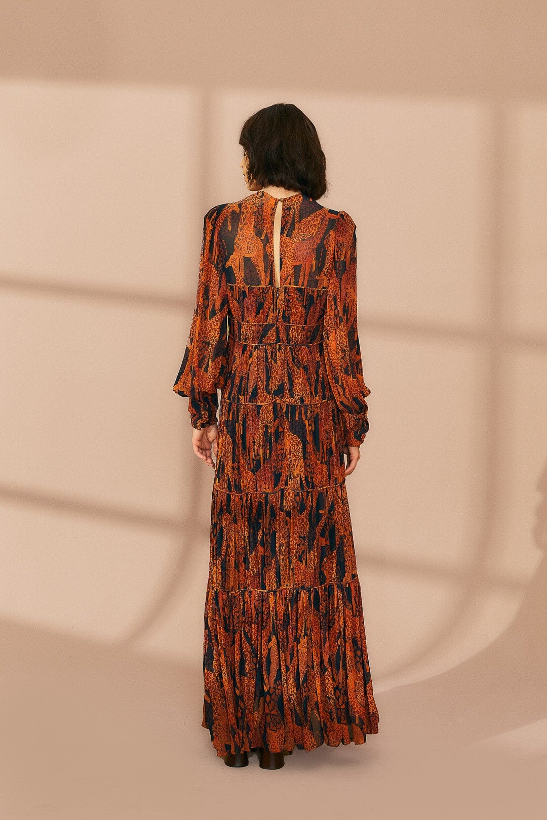 black giraffes puff sleeve maxi dress